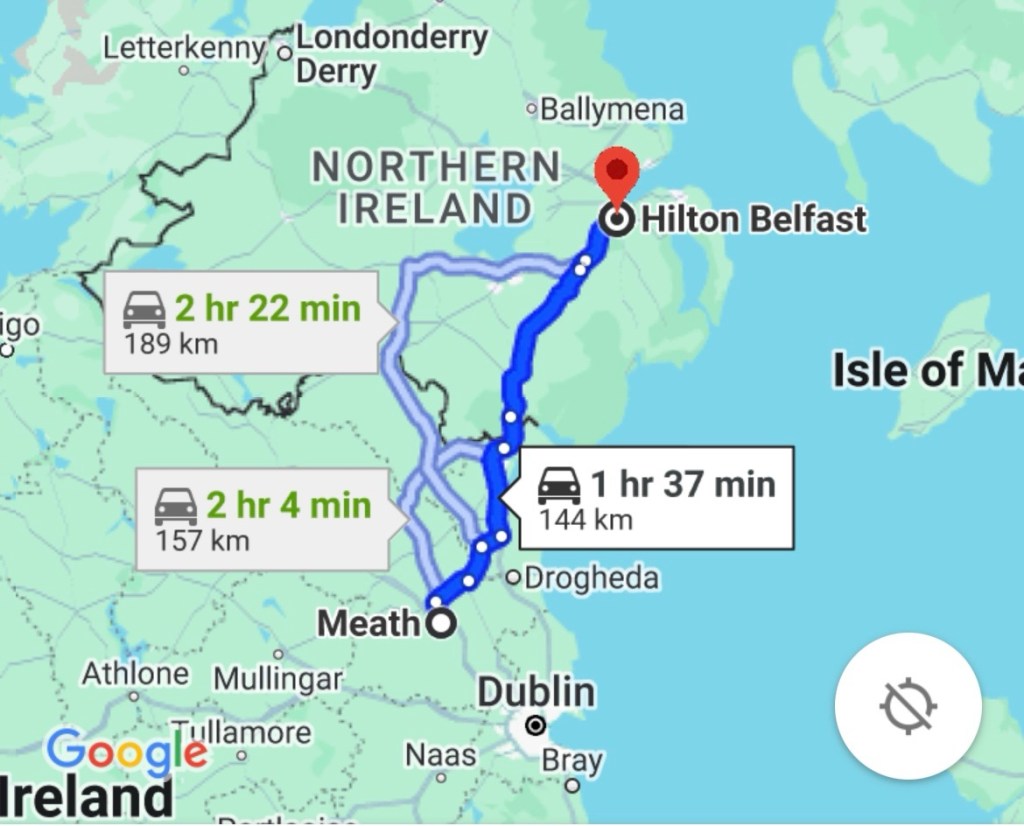 We are staying in Hilton Hotel Belfast and it took us around 2 hours to get here from our home with some stops.